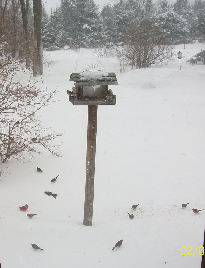 | This winter we have noticed a lot more birds than usual visiting our feeder. Most are chick-a-dees and sparrows with an occaisional cardinal.... |